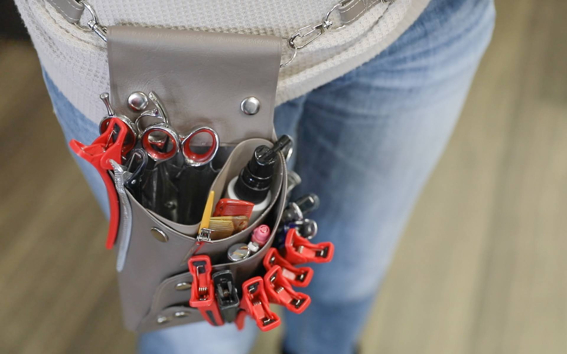 1人毎にハサミ等の器具消毒、カットクロス、タオル等のディスポーザブル化を実施させて頂いております。そして近年のコロナ禍においては、より対策を強化し、厚生労働省が定める対策を基本に、いち早くフェイスシールドの着用を取り入れ、2020年8月に開発しました1人毎に消毒のできるシザーケース「TRUST」を現在も継続して使用させて頂いております。