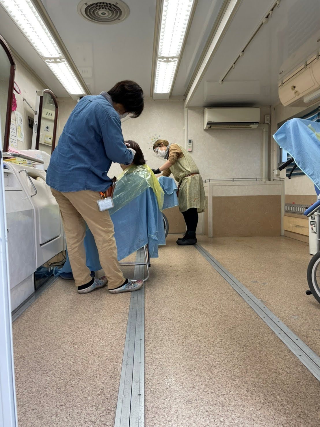 「移動理美容室」とは、お客様のご都合のよい日時に介護施設や医療施設等に理美容師が、理美容が出来る特殊な車両でお伺いする出張サービスです。